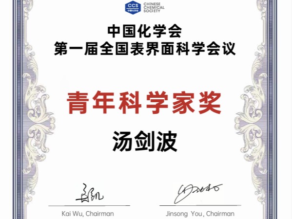 Dr. Jianbo Tang | Dr. Jianbo Tang Awarded a Young Scientist Award at the 1st National Conference on Surface and Interface Science of the Chinese Chemical Society