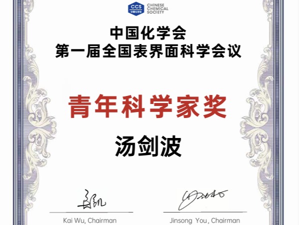 汤剑波博士 | 汤剑波博士获中国化学会第一届全国表界面科学会议“青年科学家奖”